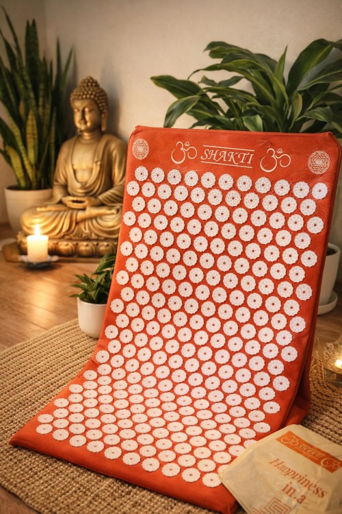 Die Shaktimatte Orange verbindet traditionelle Akupressur mit moderner Verarbeitung und eignet sich ideal für eine Auszeit vom Alltag.